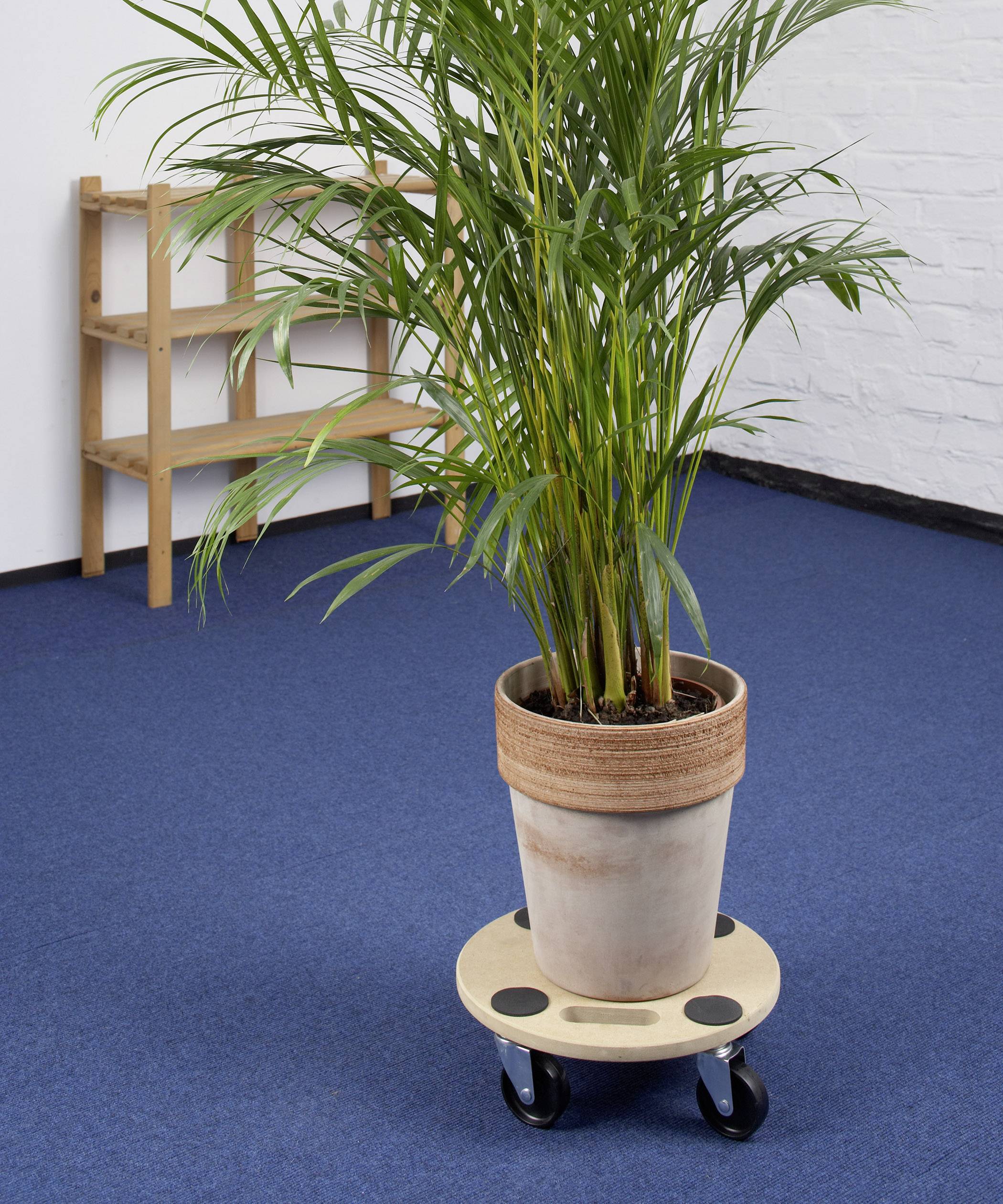 Univerzalno primjenjiv prijevoz i valjak za kante s cvijećem, pogodan za neosjetljive podove poput tepiha.